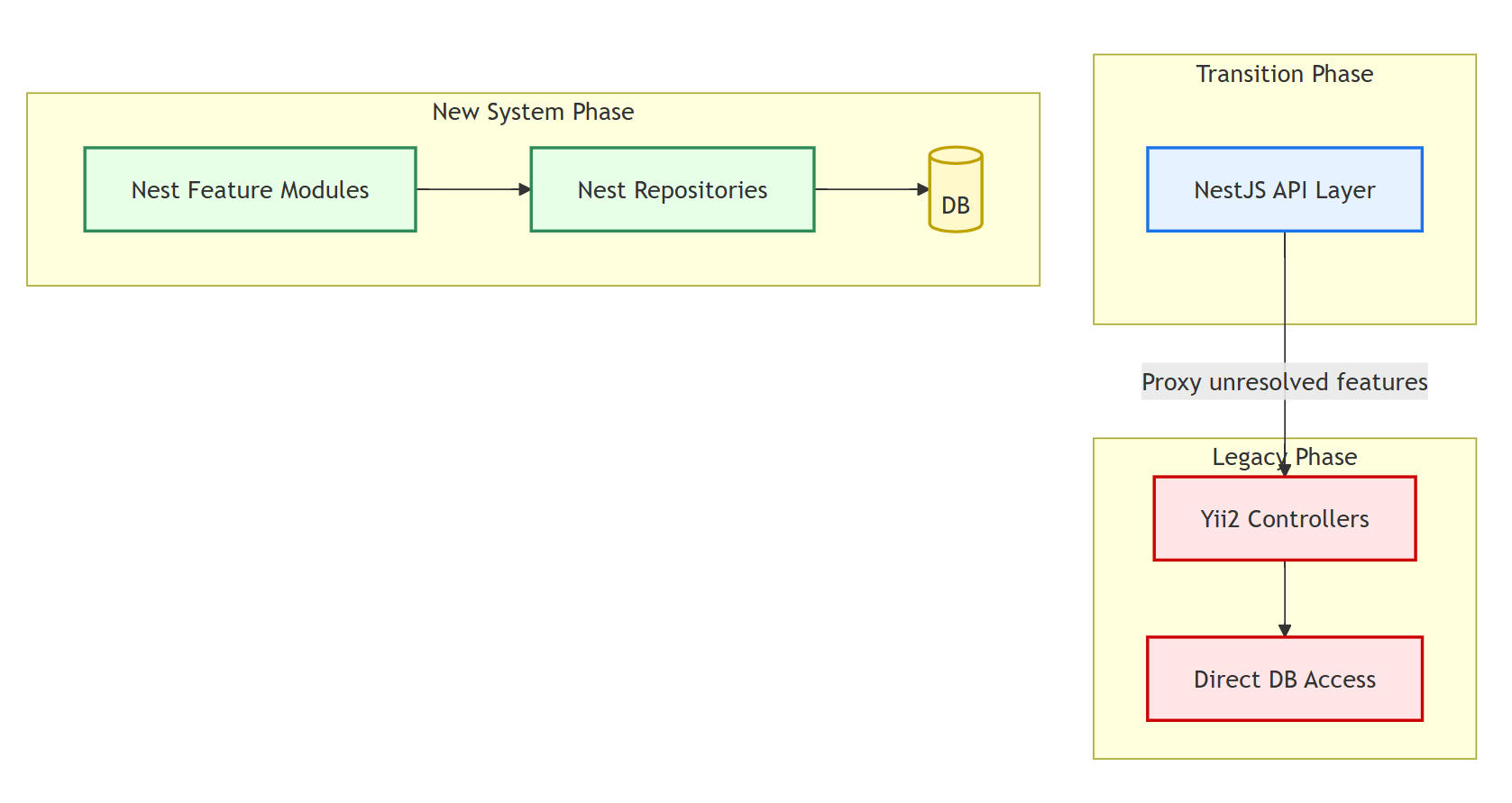 Yii2 remains available via internal proxy routes