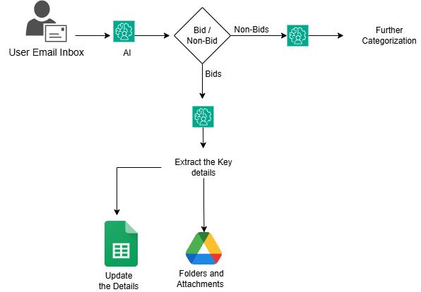 The AI doesn’t just read every email –  it first decides whether the message is a bid invitation or not.